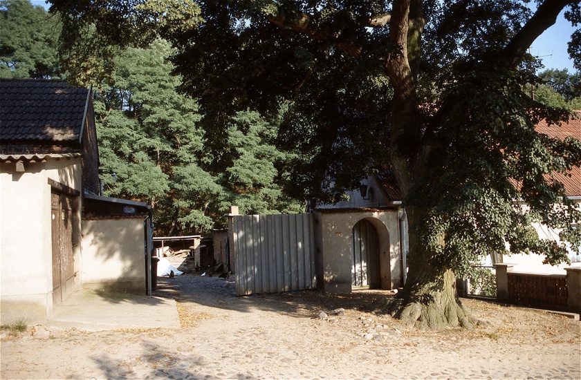 Der Eingang zum Bauerngehöft mit der großen Linde davor.