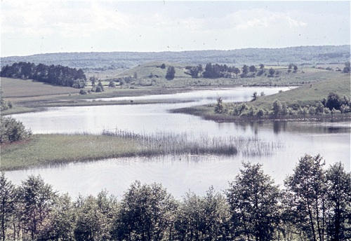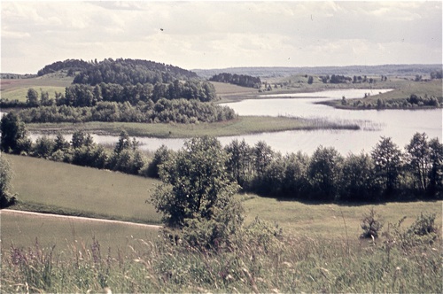 Der Kamerastandpunkt ist das Südufer, der Blick geht über die Südostbucht und zeigt im Hintergrund den Schiefen Berg, von dem die oberen Bilder (wie erwähnt) in den 1950er Jahren gemacht worden sind.
