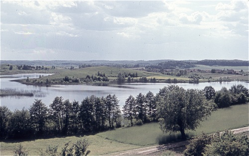 Auf diesem zweiten Foto ist die Insel im See, die sich auf dem oberen Bild nur schwach am rechten Rand andeutet, fast komplett zu sehen; außerdem rückt der markante Eikertberg im Hintergrund nun ziemlich an den linken Bildrand und ist vollständig zu erkennen. Rechts sieht man bereits die Spitze des Gotteswerders.