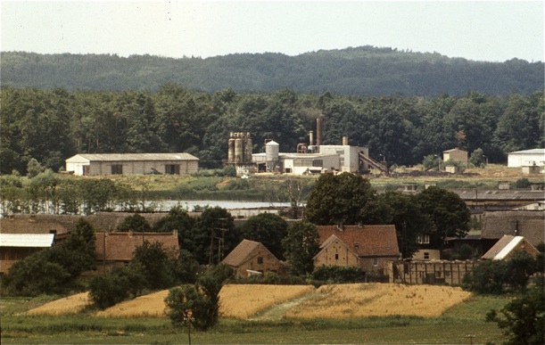 Das untere Bild zeigt das einstige Trockenwerk der alten LPG am Rande des Ortsteils Weißensee; davor erkennt man den namengebenden See.