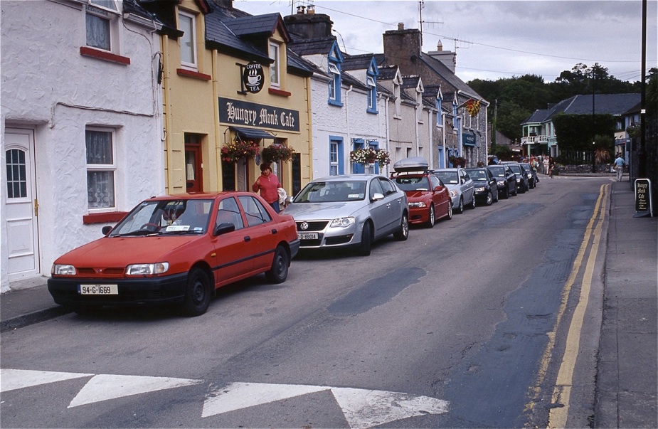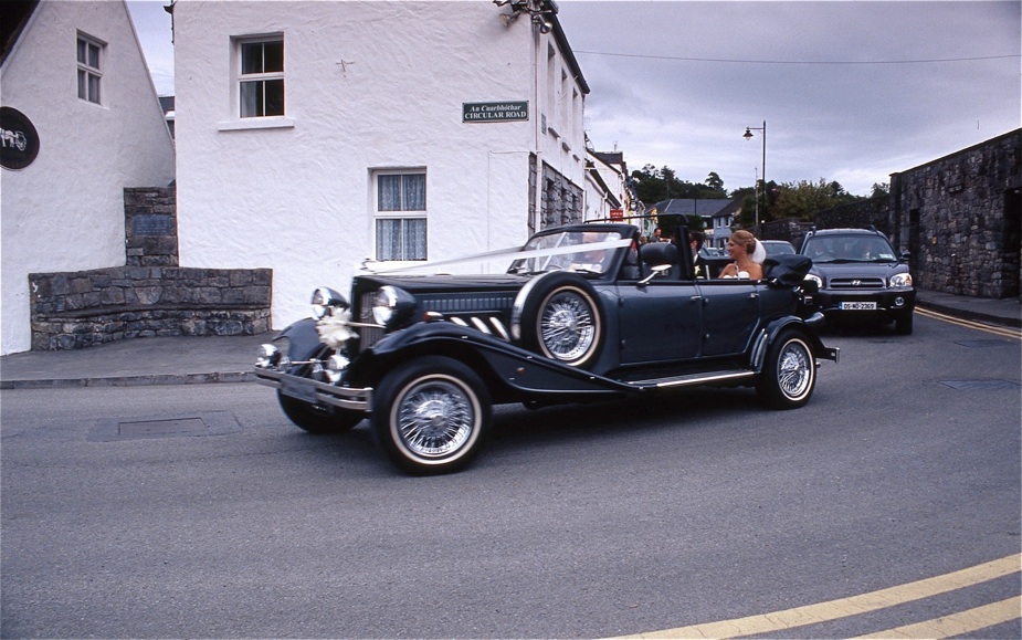 Im folgenden nun zwei Bilder aus dem Ort: das nächste Foto zeigt eine Straßenansicht von Cong unmittelbar neben dem Gelände der Cong Abbey und auf dem übernächsten Bild konnte ein traditionelles Hochzeitsauto erhascht werden (am rechten Bildrand sieht man die hohe Mauer, hinter der sich der oben gezeigte Friedhof befindet).
