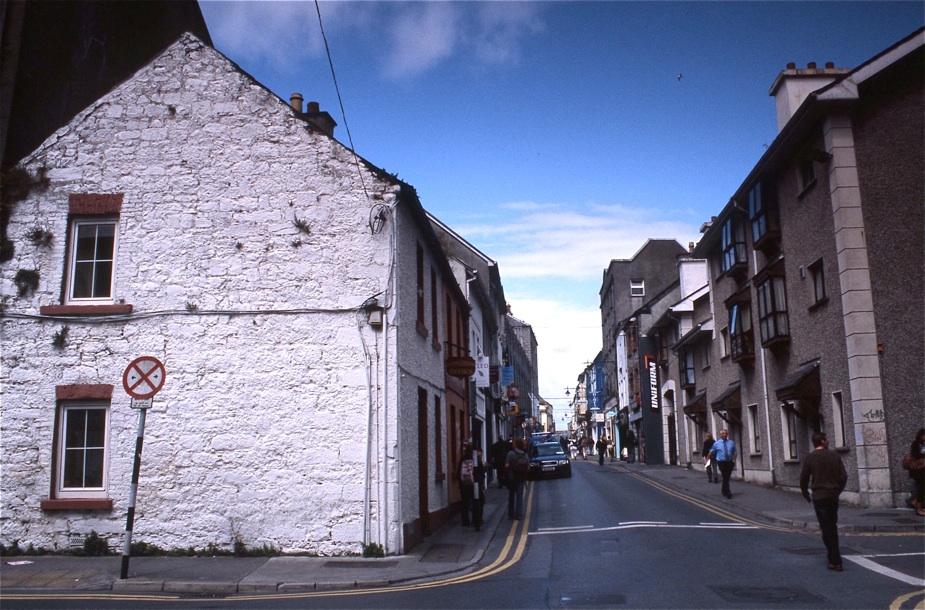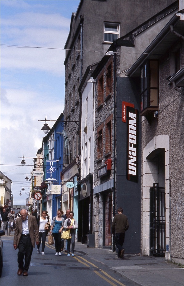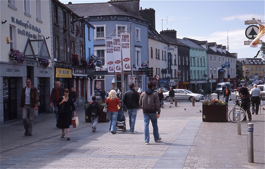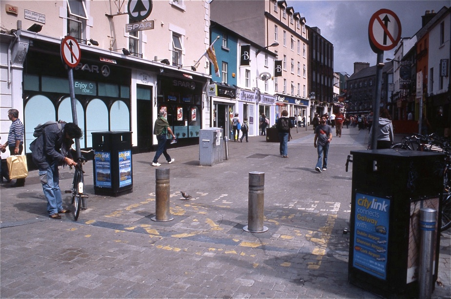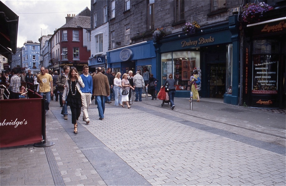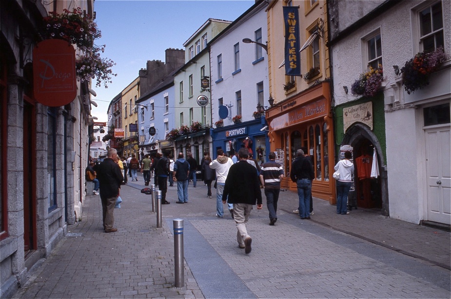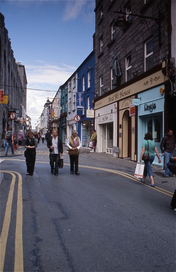 Es gibt mitten in der Stadt einen Fußgängerbereich, der in der Nähe des Eyre Square beginnt und dann vorbei an Lynch´s Castle hinunter zum Hafen führt. Zwischendurch teilt sich dieser Weg in drei Zweige, von denen zwei an einer querenden Straße enden, der dritte (linke) dagegen erst unten am Hafen, aber auch er wird zwischendurch von einer schmalen Straße unterbrochen, doch haben hier stets die Fußgänger das Sagen.
