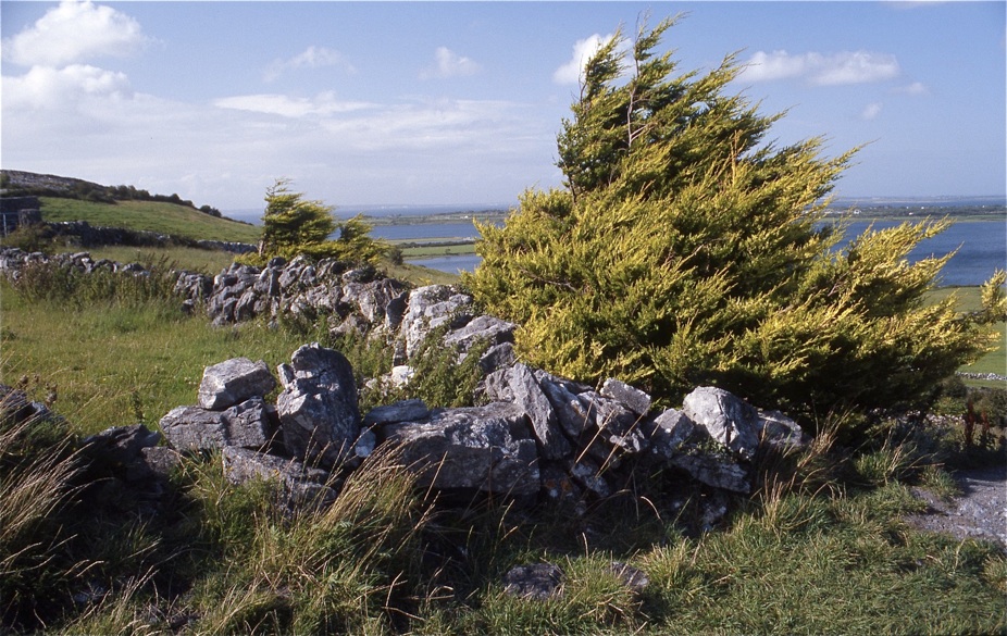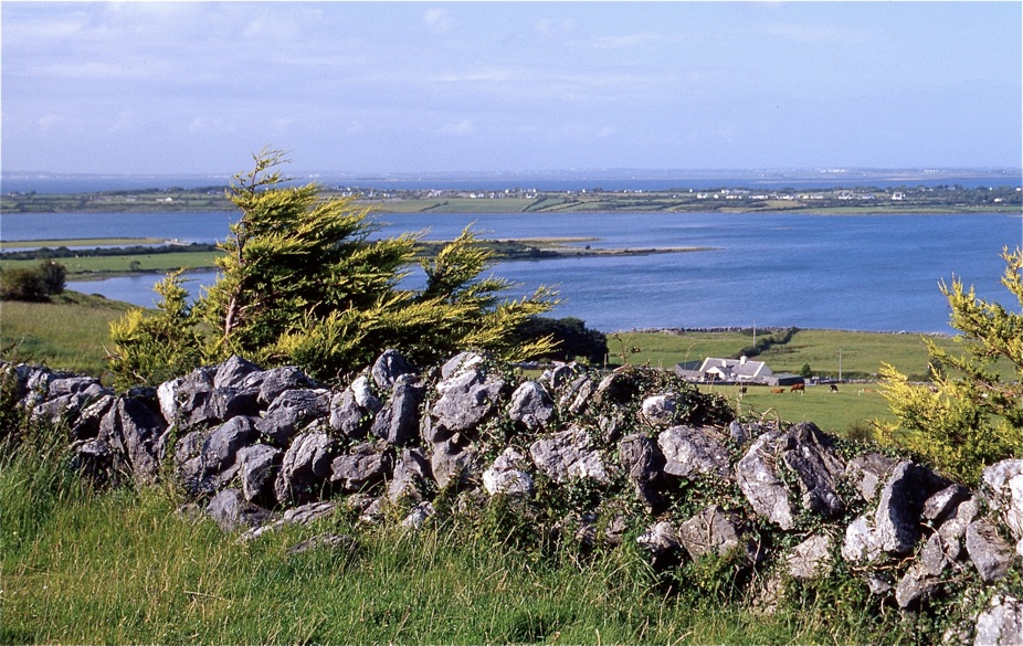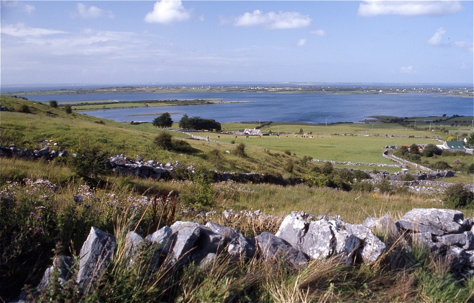 Das, was man hier sieht, ist nur ein sehr kleiner Teil der Bucht, das Nordufer ist ganz weit hinten im Dunst zu erkennen, immerhin erreicht die Galway Bay hier eine Breite von rund 10 Kilometern und ist im Übergangsbereich zum offenen Meer sogar dreimal so breit.