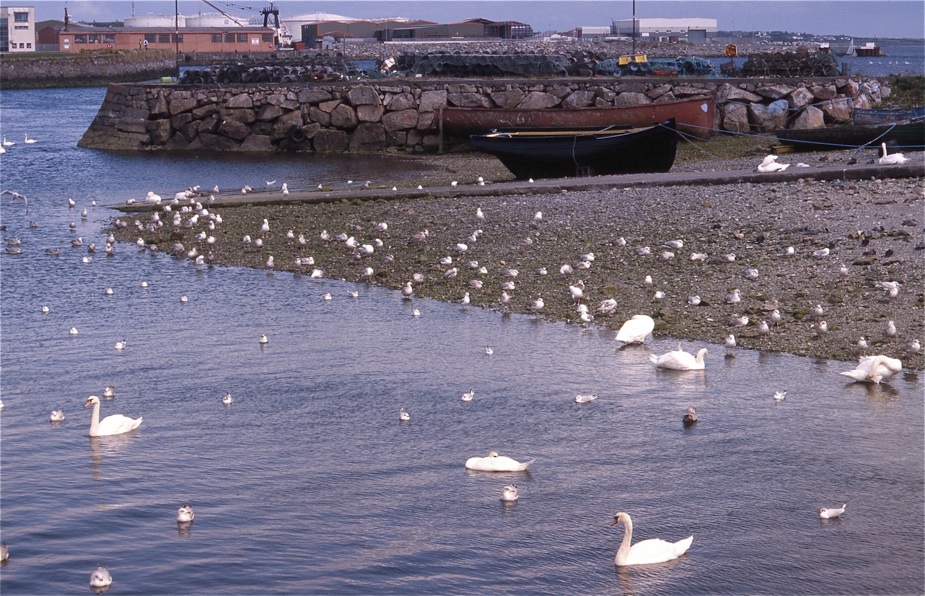 Unmittelbar in den Hafen mündet der Corrib River, dessen Wasserstand (und damit auch die Fließgeschwindigkeit) stark von den Tiden abhängt. Bei Ebbe wird er zum reißenden Strom, in dessen Mitte manchmal (allerdings etwas flussaufwärts) kühne Angler stehen und ihr Glück versuchen; bei Flut hingegen bewegt sich sein Wasser gemächlich vorwärts - so, als hätte es alle Zeit der Welt.