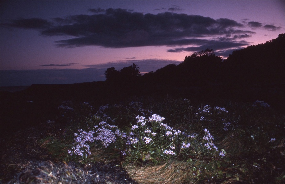 Die Sonne verschwand kurz über dem Horizont hinter einer Wolkenwand, die warmen Farben wurden vom Kodak E 100 GX (Diafilm) noch unterstützt, so dass angenehme Töne entstanden (man muss nämlich bedenken, dass diese Bilder in keiner Weise bearbeitet wurden, sondern hier im Original zu sehen sind - von Abweichungen, die durch das Scannen entstehen, einmal abgesehen).