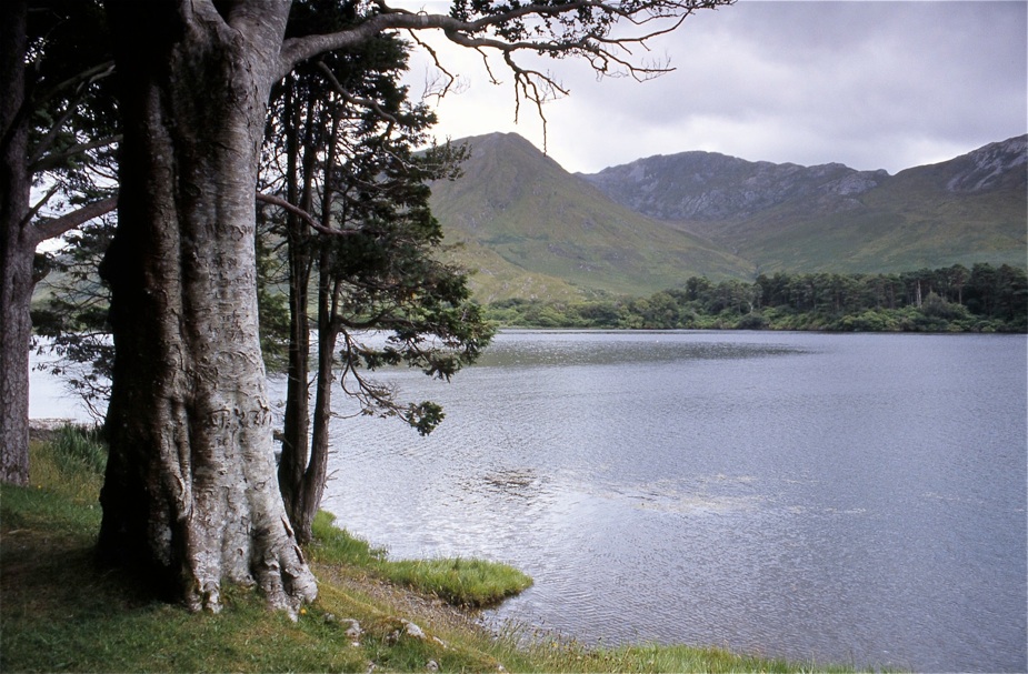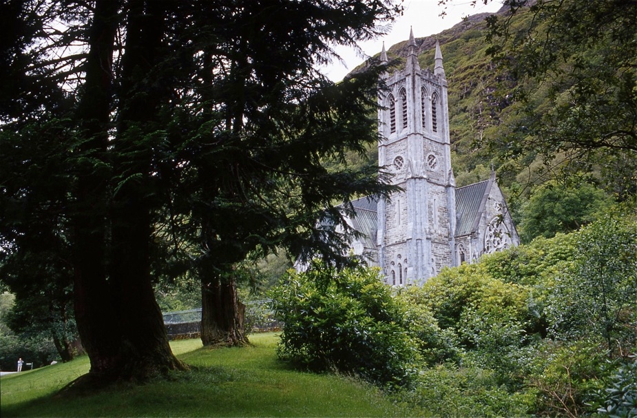 Unterhalb des Klosters führt der Weg am Seeufer entlang in östliche Richtung zur kleinen Kirche, die Mitchell Henry als Gedenkstätte für seine verstorbene Frau errichten ließ.