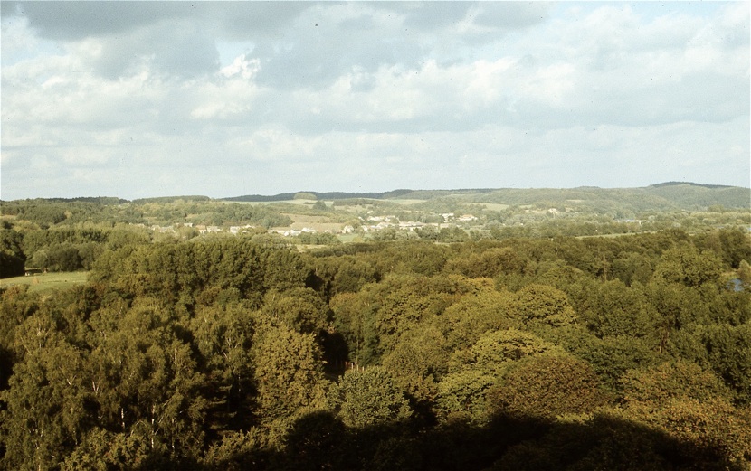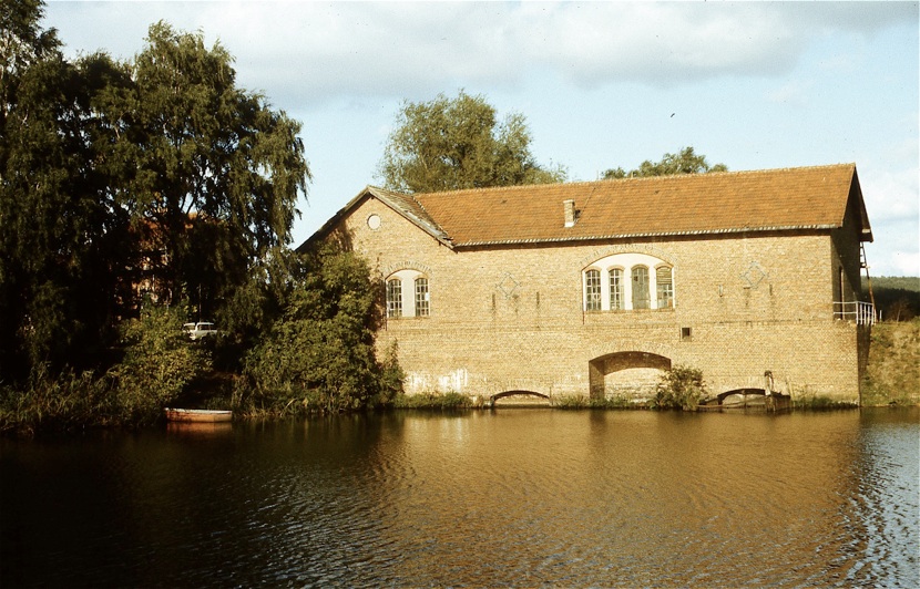 Das MdI-Sanatorium war derart hinter Bäumen versteckt, dass man einen Blick darauf nur vom Gelände selbst (auf das man aber als Besucher nicht gelangen konnte) oder eben wie hier vom Hebewerk aus werfen konnte.