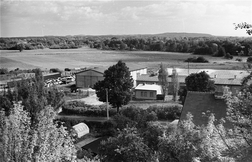 Die folgenden drei Bilder zeigen einen Blickschwenk, der zunächst die Straße entlang führt, doch verdecken aufkommende Bäume teilweise die Sicht (diese Szenerie war auf der Seite „1988“ bereits in Farbe zu sehen), dann deuten sich schon langsam die Rinderställe an, wobei zunächst nur das so genannte Bergehaus zu erkennen ist und schließlich tauchen auch die beiden Stallgebäude auf.