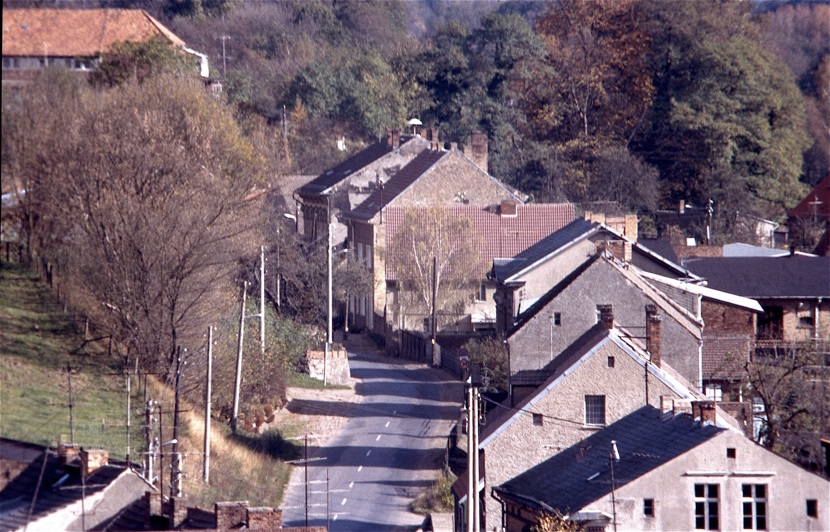 Kehrt man von Künkels Berg zurück, trifft man zuerst auf die Häuser der Bergstraße (wie hier zu sehen). Auch hier war es damals nur der blaue Himmel, der mich interessierte, so dass das Bild ausschließlich aus diesem Grund entstand; aber so wurde immerhin eine Szenerie festgehalten, die ich sonst wahrscheinlich nie fotografiert hätte.