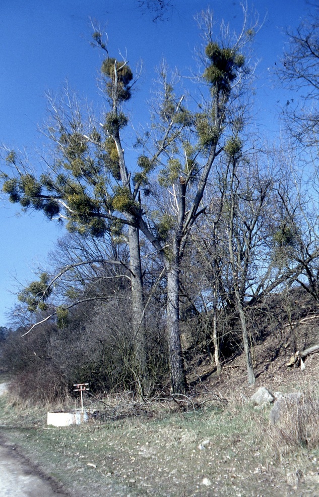 Hier oben findet man nur noch Gärten; die beiden großen abgestorbenen Pappeln, auf denen zahlreiche Misteln wachsen, gehören inzwischen der Vergangenheit an.