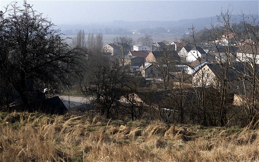 Im folgenden nun die erwähnten Aufnahmen vom Mühlenberg, der heute längst kein attraktiver Aussichtspunkt mehr ist, da zu viele aufkommende Sträucher und Bäume die Sicht versperren, so dass lediglich die Wintermonate einigermaßen die Sicht auf das Dorf freigeben.