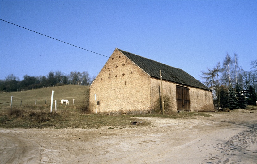 Die alte Turnhalle (ganz früher ein Pferdestall), dahinter die Baracke des ehemaligen Kindergartens, der inzwischen zum Jugendclub umfunktioniert wurde.