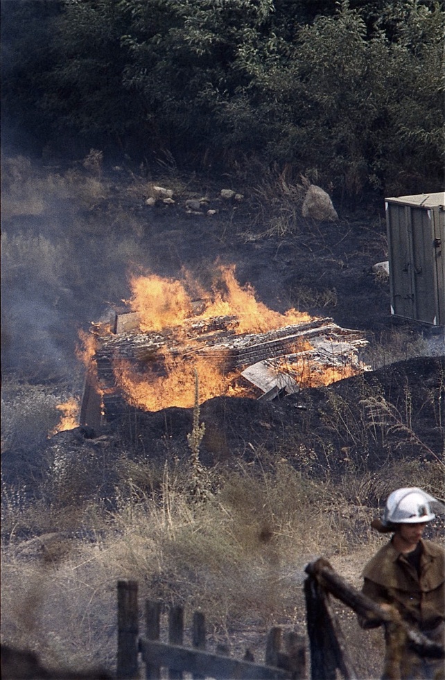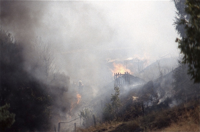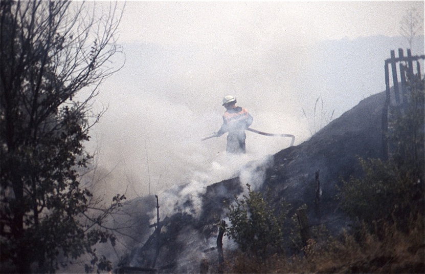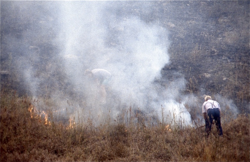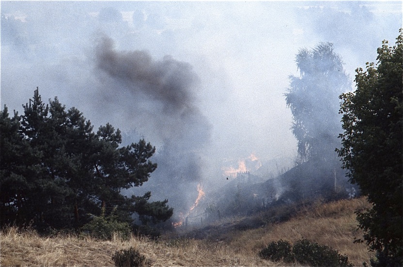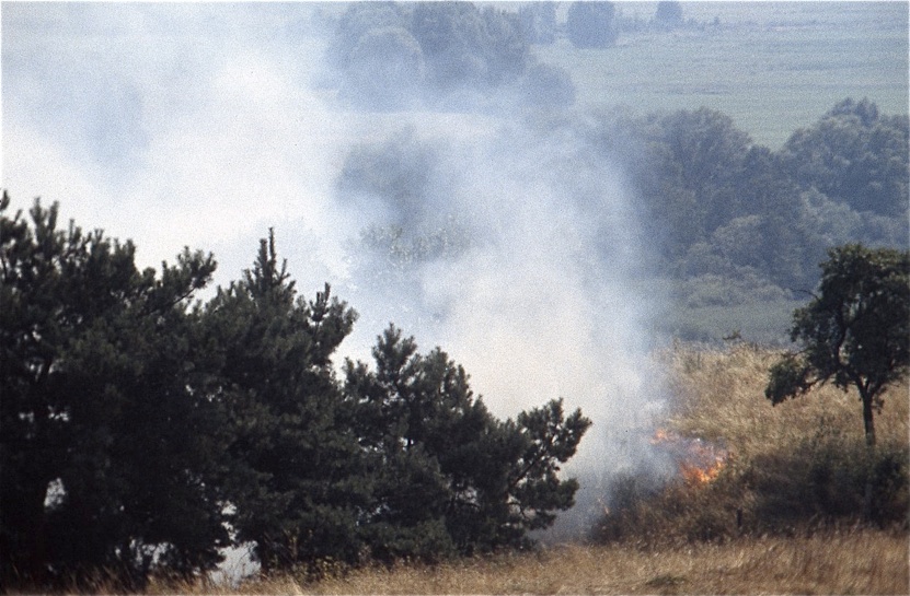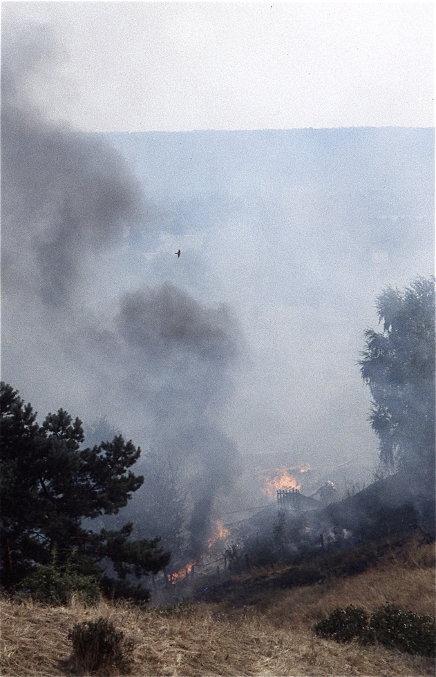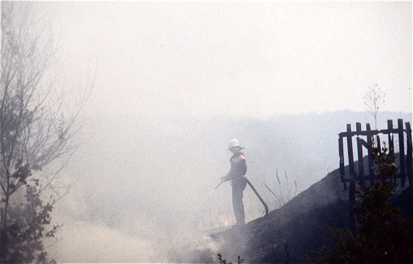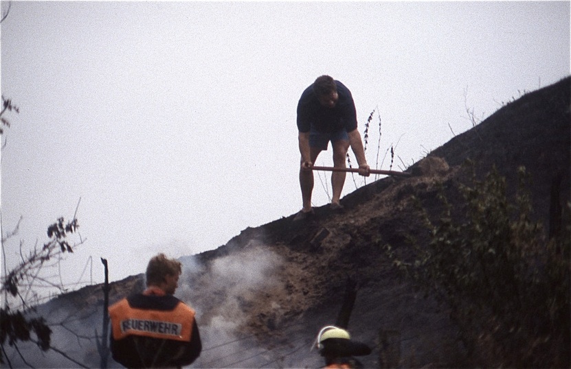 Doch das Gras war ausgedörrt und der Sommer 1994 insgesamt heiß und trocken, da gab es also kaum eine natürliche Barriere und das Feuer hätte sich schnell und über große Flächen ausgedehnt, es musste also unbedingt ein Übergreifen auf benachbarte Grundstücke verhindert werden, denn diese waren z.T. nur wenige Meter entfernt.