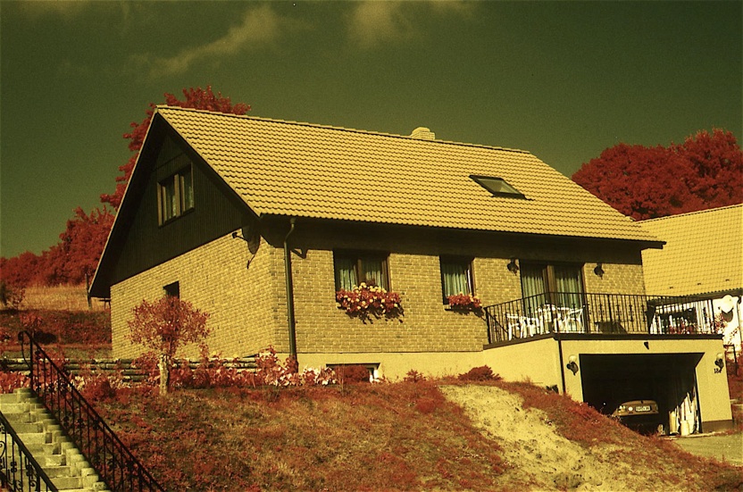 1995 verwendete ich meinen ersten Infrarotfilm, mit dem ich neben einigen Motiven in Oderberg auch unser Haus in der Triftstraße fotografierte, welches dadurch eine etwas andere Farbe erhält.