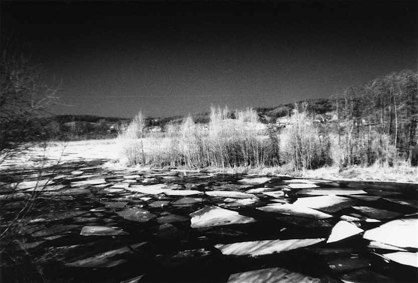 Das zweite Bild (wieder von Goldbecks Berg aufgenommen) lässt die Szenerie etwas surreal erscheinen, der Infrarotfilm bringt eine seltsame Stimmung ins Bild.