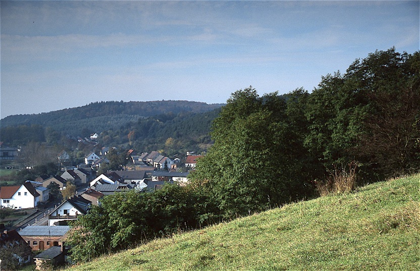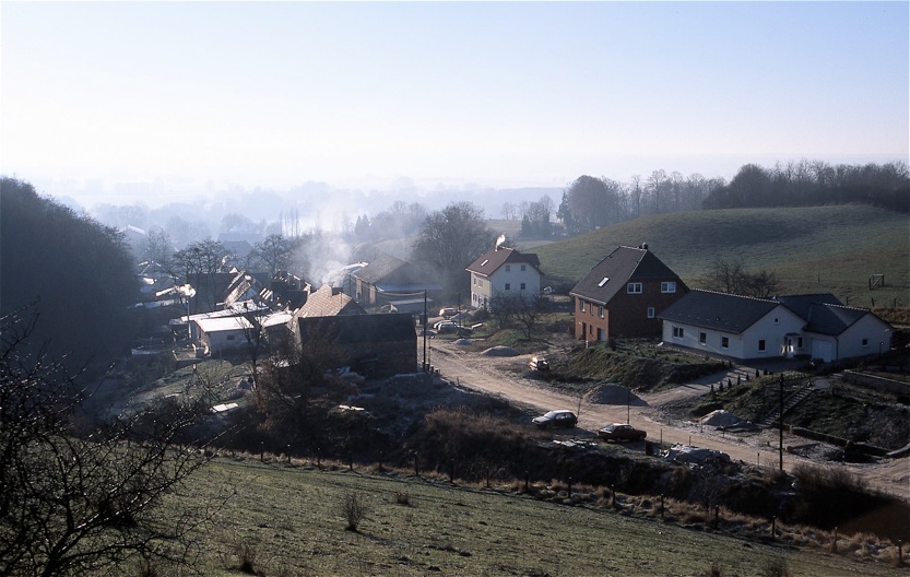 Das erste braucht nun inzwischen fast nicht mehr kommentiert werden, doch unser Thema ist der Rückblick auf die Veränderungen, und wer genau hinschaut, sieht, dass der Straßenbau im Dorf begonnen hat, die Hauptstraße ist bereits einseitig mit einer neuen Decke überzogen, in der Mitte stehen die weiß-roten Begrenzungspfeiler (was bereits auf dem Infrarotbild oben zu sehen ist). Das ist übrigens auch oben auf dem Schwarz-Weiß-Foto zu sehen, doch fällt es dort nicht so auf.