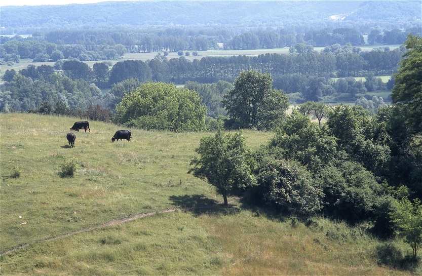 Dieses Bild wurde ebenfalls am 17. Juni aufgenommen, der Blick geht hier von Sacks Berg (obere Triftstraße) über Radickes Berg, auf dem Melcherts Kühe weiden, zu den Wiesen des östlichen Niederoderbruchs.