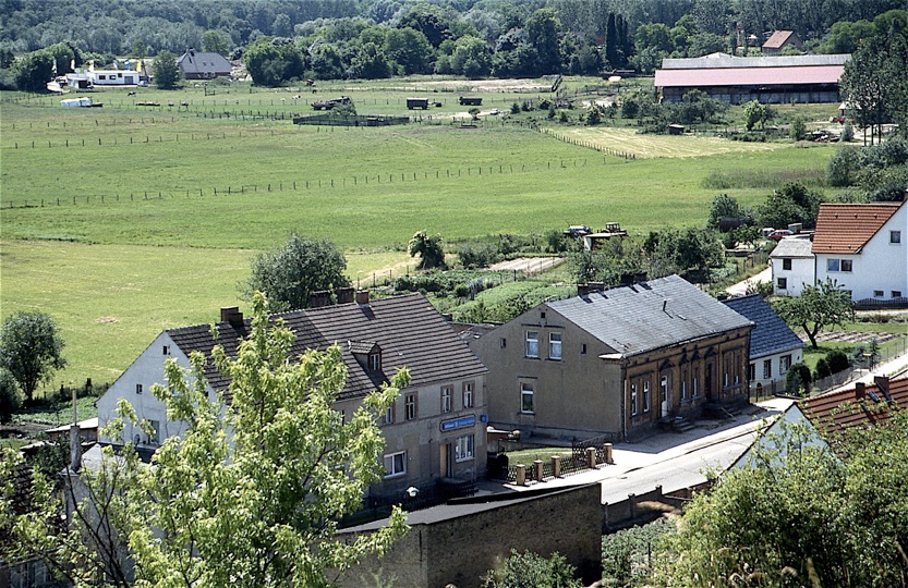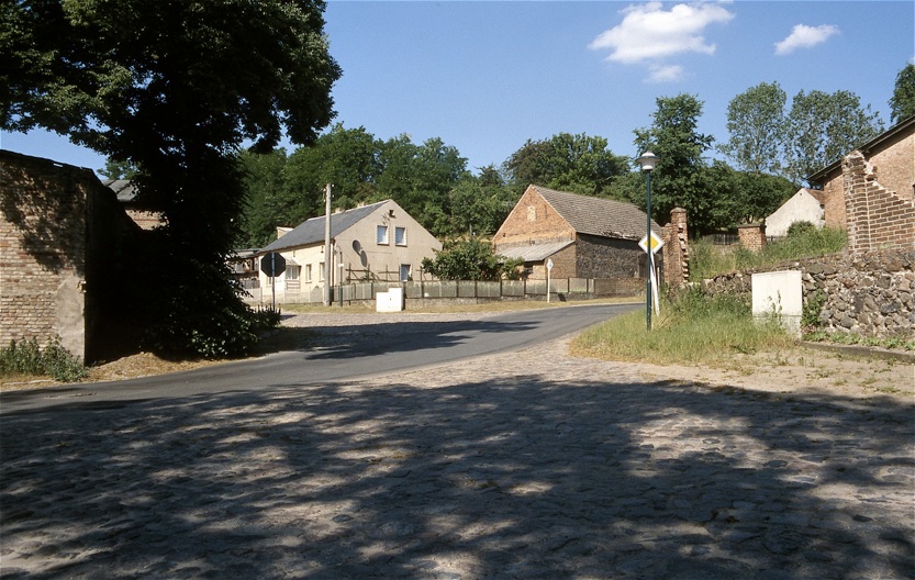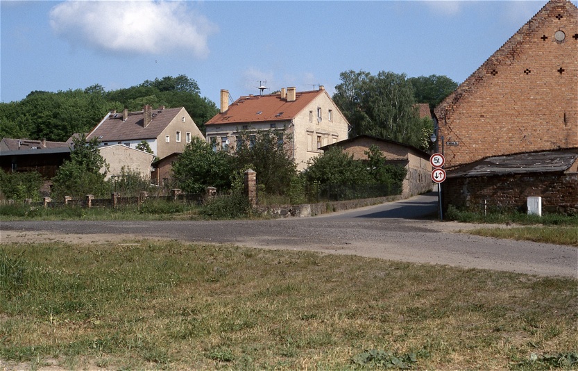 Wieder ein Blick auf die Ernst-Thälmann-Straße, diesmal mit dem Abzweig der Alten Parsteiner Straße, die bereits auf der Seite „1995“ Erwähnung fand (s.d.). Hinter diesen Häusern erhebt sich der Mühlenberg. (Foto: 11. Juni)
