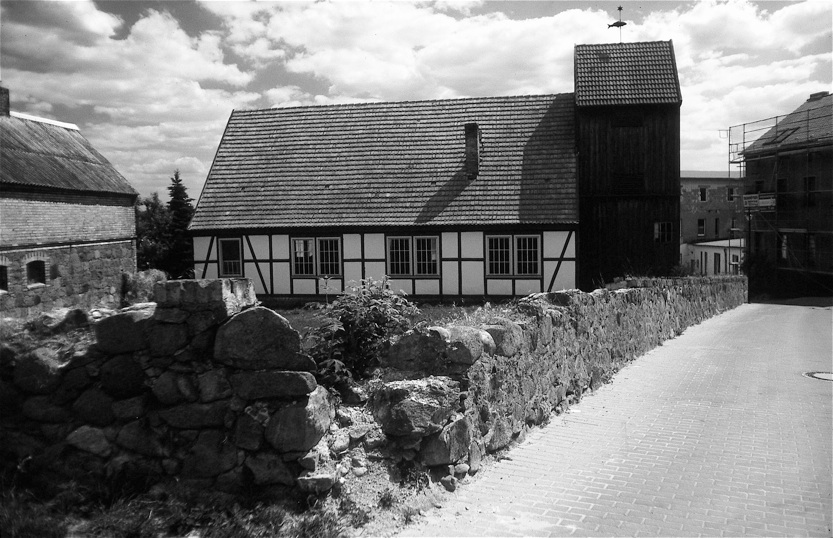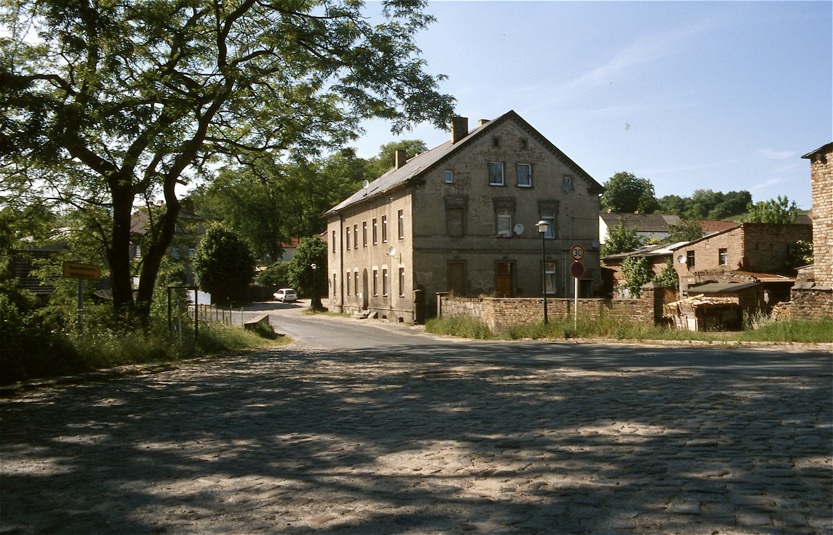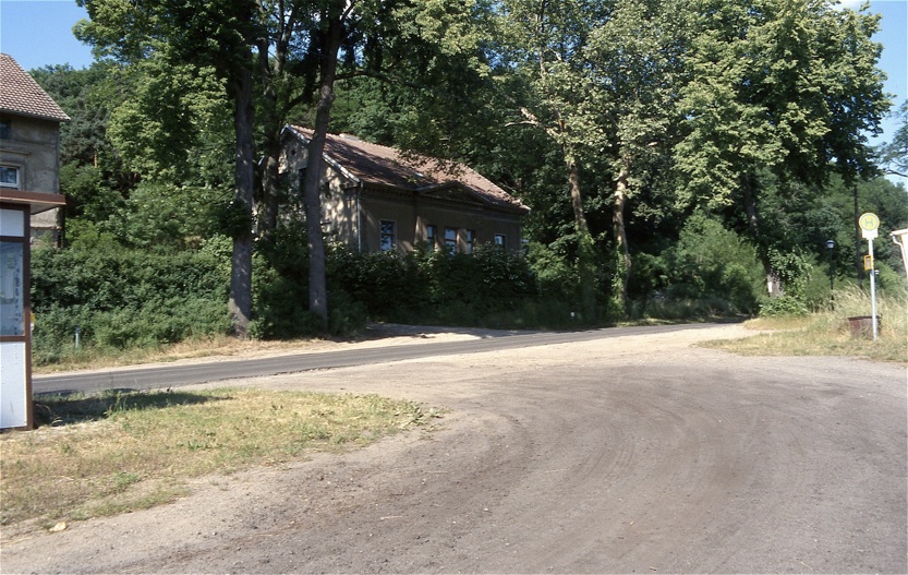 Blick von der Einfahrt zum Gutshof zur Ernst-Thälmann-Straße mit der Haus-Nr. 10; zu dieser Zeit befindet sich hier im Erdgeschoss noch die Arztpraxis, die 1999 in die Karl-Liebknecht-Str. 1 umzog.
