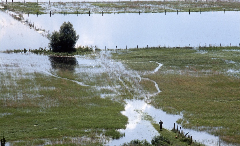 Manche Bereiche erinnern entfernt an Reisfelder, dann wieder gibt es Abschnitte, die etwas tiefer sind, denn auch Wiesen sind nicht völlig eben, doch wenn sie frisch gemäht sind, schaut ohnehin kein Grashalm aus dem Wasser, was hier wohl auch eine Rolle spielt.