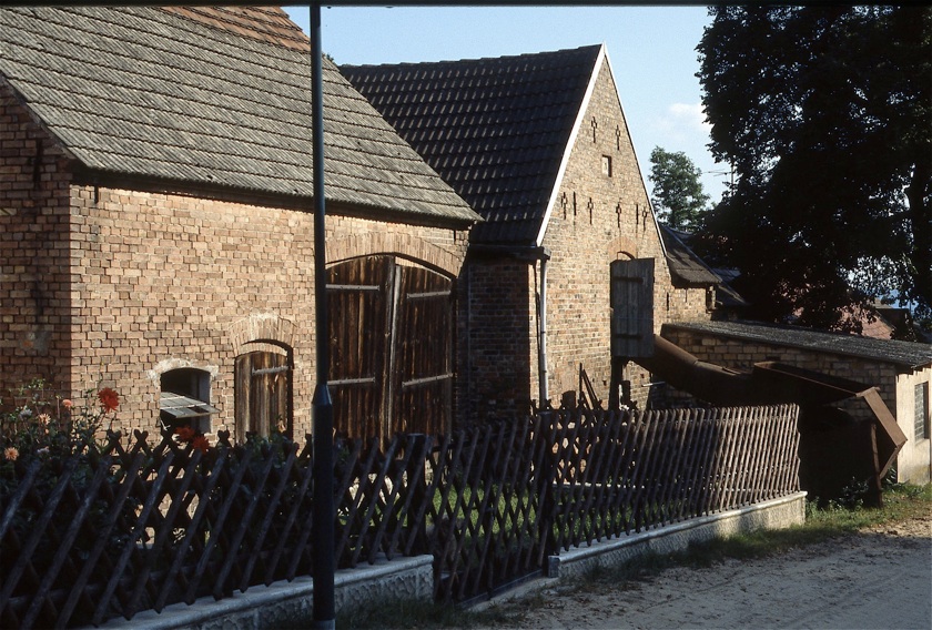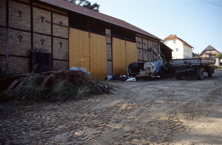 Melcherts Scheune mit bereits neuen Toren, dahinter die Neubauten, die langsam das Ende unserer „Triftstraßentour“ einleiten.