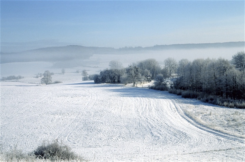 Wir begannen oben mit einer Winteraufnahme des Lieper Plateaus vom 26. Januar; hinten im Tal (links der Bildmitte) erkennen wir das Düsterbruch (siehe auch Seite „1995“), dahinter verschwindet als dunkler Schatten im Nebel das Vorwerk. Rechts erkennen wir Gärten - das ist der Bereich, in dem sich das bereits erwähnte ehemalige Vorwerk Charlottenthal befand. Auf einer alten Karte der „Königlichen Oberförsterei Liepe“ von 1862 ist es noch eingezeichnet.