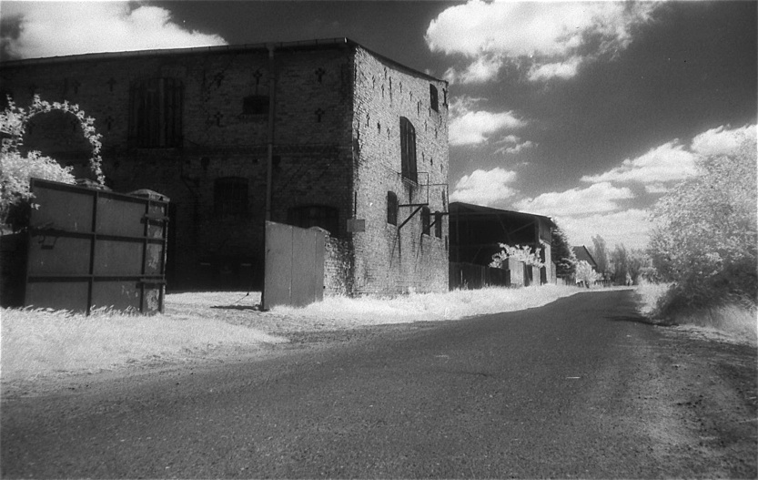 Auf dem folgenden Bild sieht man das Haus Nr. 9 in der Karl-Liebknecht-Straße am Fuße von Goldbecks Berg. Hier wohnte früher (zur DDR-Zeit) neben anderen die Familie Fatius, die eine Eier-Annahmestelle betrieb. Das Haus wirkt durch den Infrarotfilm mit seinem starken Kontrast wie ausgebombt - so, als wäre es nur noch eine Ruine, was natürlich nicht der Fall ist.