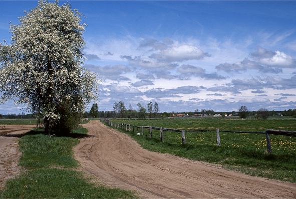 Selbst die Straße, die von der Dorfkreuzung nach Süden führt, war längst kein romantisch anmutender Sandweg mehr, sondern eine feste Asphaltstraße, auf der man nun bequem über Kowallik und Blumenau nach Friedrichshof (Rozogi) fahren konnte.
