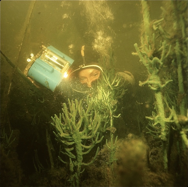 Da die Prottenlanke nicht tiefer als 2 Meter und ihr Wasser fast ebenso klar wie im übrigen See ist, reicht das Licht am Grund für die Ansiedlung von Algen in den Schwämmen aus, so dass diese entsprechend grün erscheinen.