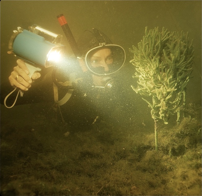 Der Aufwand, um diese beiden Bilder machen zu können, war relativ hoch, es mussten bestimmte Lichtverhältnisse geschaffen werden, die nur durch das Zusammenwirken beider Taucher realisiert werden konnten, was wiederum eine Kommunikation voraussetzte, die sich unter diesen Bedingungen sehr schwierig gestaltete. Die abgebildete Taucherin musste eine bestimmte Position einnehmen und den Scheinwerfer wiederum in einem bestimmten Winkel halten. Das Hin- und Hermanövrieren musste zudem so erfolgen, dass möglichst wenig vom Untergrund aufwirbelte - ein kompliziertes Unterfangen.