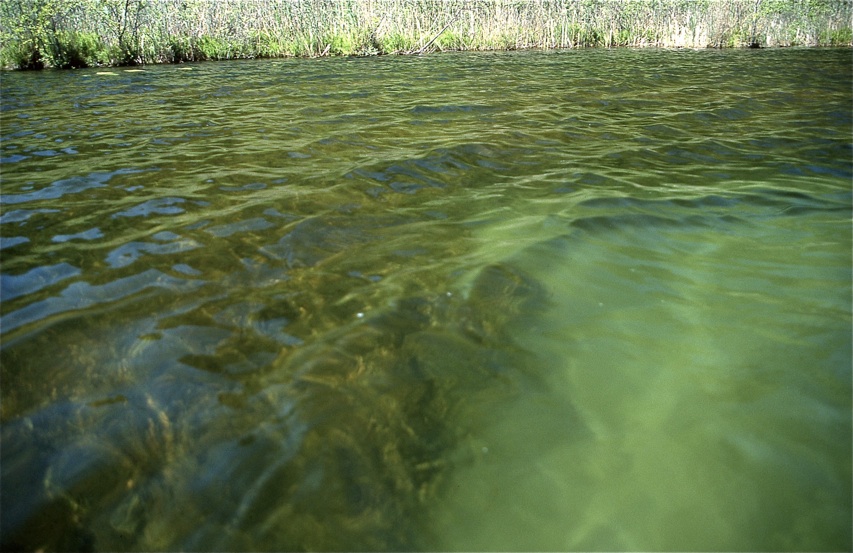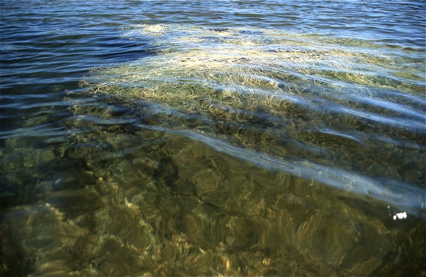 Alle folgenden Bilder wurden am 7. Juni 1997 vom Schlauchboot aufgenommen (mit Fuji Velvia Diafilm). Die Verwendung eines Polarisationsfilters ermöglicht teilweise den Blick durch die Wasseroberfläche hindurch, so dass der Grund zu erkennen ist (hier in etwa 1,5 Meter Wassertiefe).